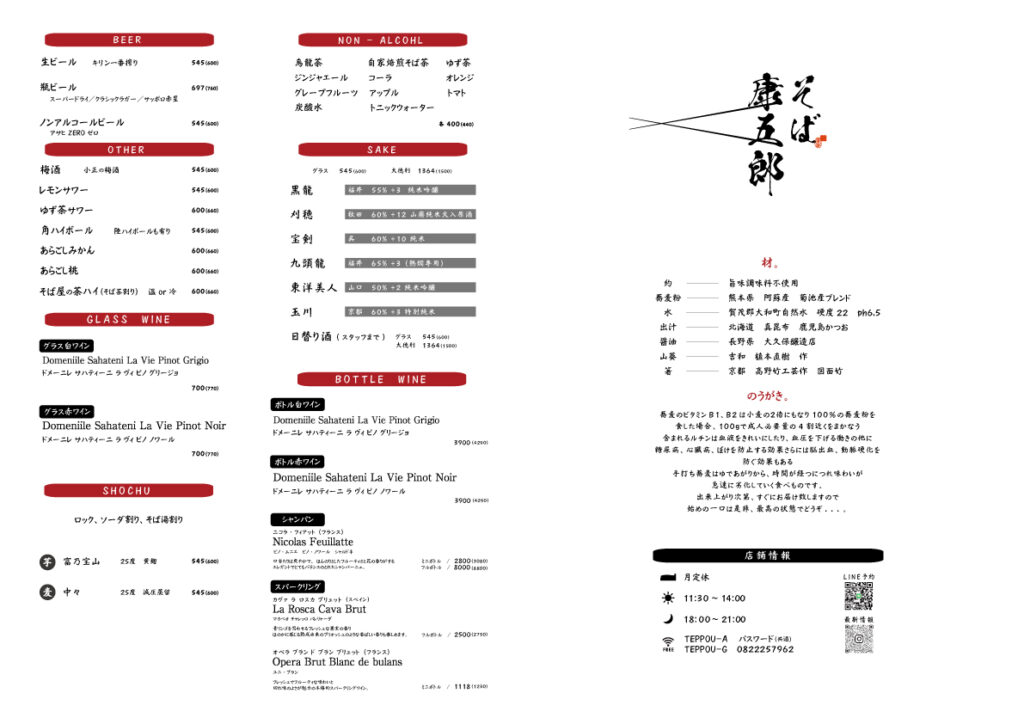 Our restaurant serves Japanese soba noodles and Japanese cuisine made with seasonal ingredients.